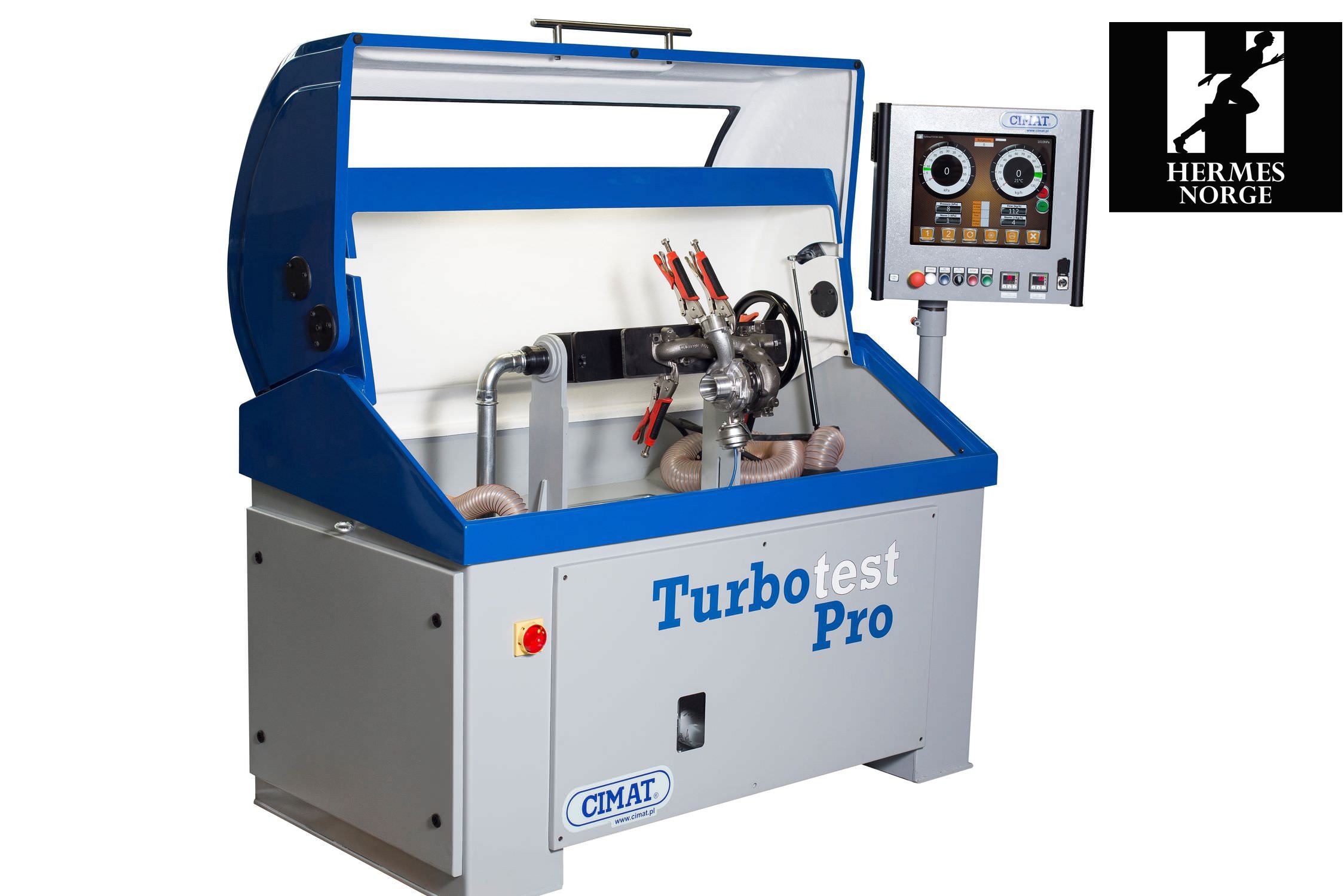 CIMAT TurboTest er en maskin som tester effektivitet og flytt, ved hjelp av den kan vi regulere den variable geometrien og måle turboladerens pictureytelse mens den er.